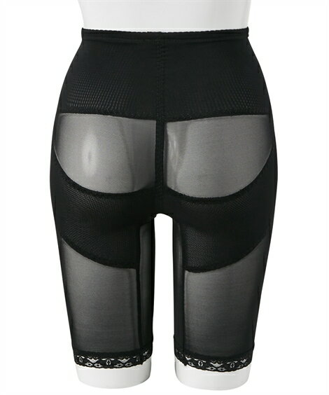 気になる腹部 前身接ぎ部分よりお尻にかけて 腰部分にパワーネットを2重張りする事でヒップアップと骨盤周辺の補正と下腹部押さえの機能がある膝上丈ガードルです!